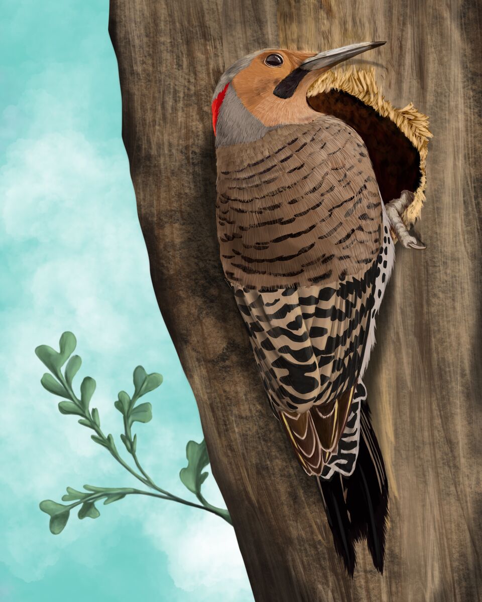 This yellow hammer is busy at work, hammering on a tree. This bird was inspired by my early morning walks in the woods. Sometimes the only sound is the noise of woodpeckers, way up in the treetops. Enjoy this beautiful bird on your wall without any damaged caused! The instant download allows you to print on a surface of your choosing and at a price that pleases.