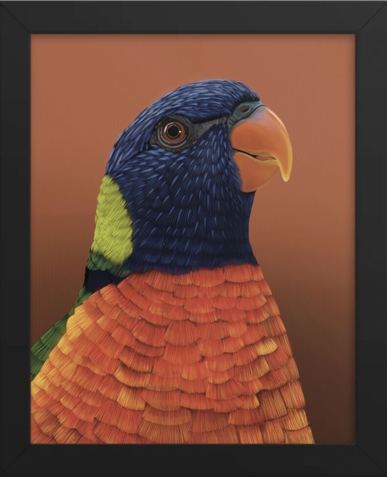 This bold parrot is available as a digital download in various sizes.