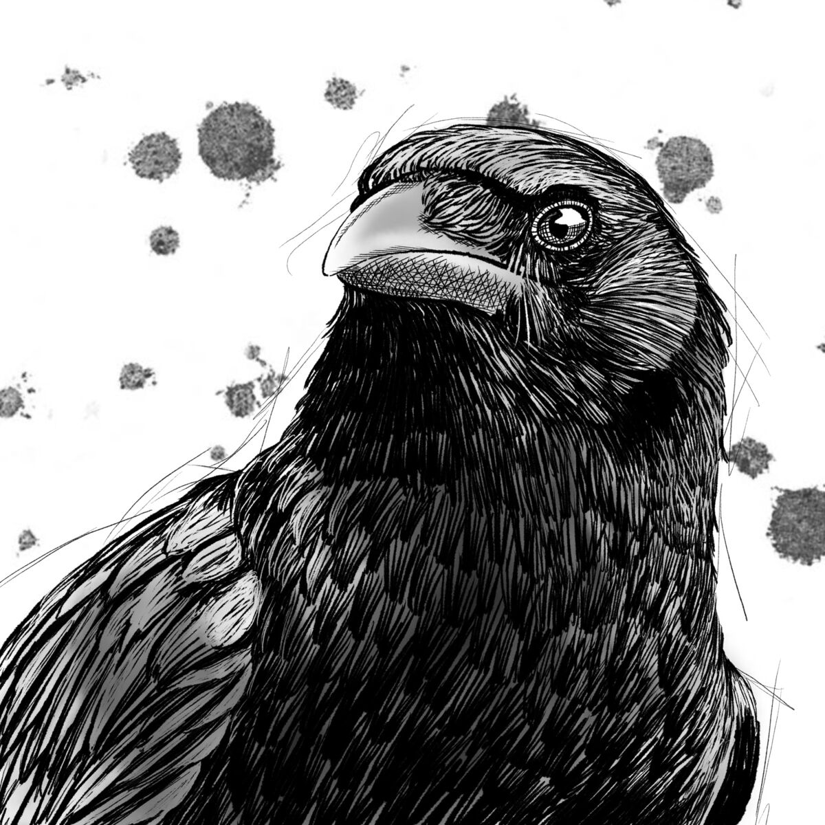 This inky crow is #5 in a series of 6. All of the Inky Crows are available as instant downloads, and print best up to 12"x12". Crow instant digital downloads are available individually in my Etsy Shop.