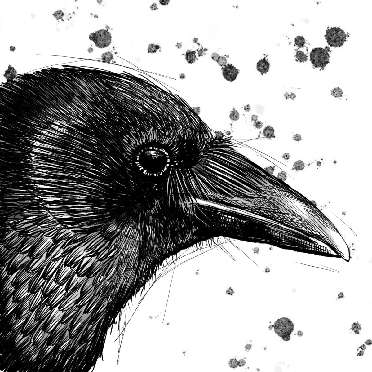 This is Crow #1 in my series of 6 Inky Crows. All of the Inky Crows are available as instant downloads, and print best up to 12"x12". Crow instant digital downloads are available individually in my Etsy Shop.